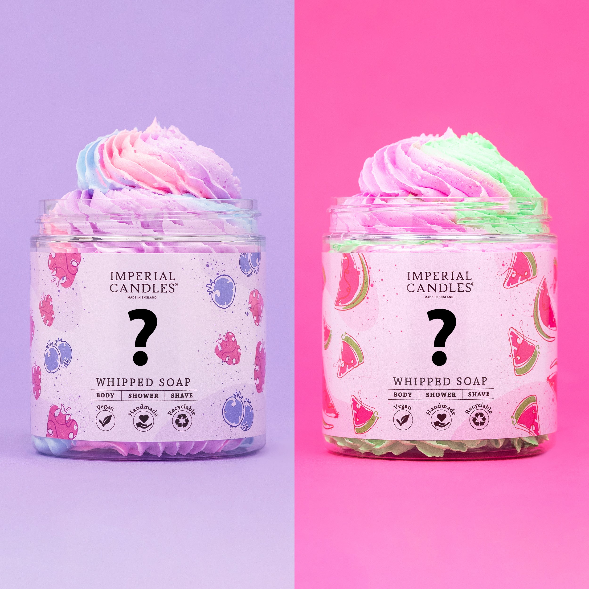 This exclusive bundle randomly includes two RANDOM luxurious handmade Whipped Soaps. Be surprised, and treat yourself.