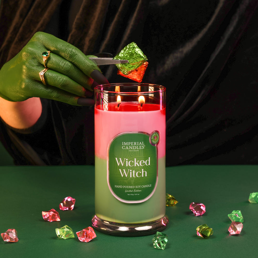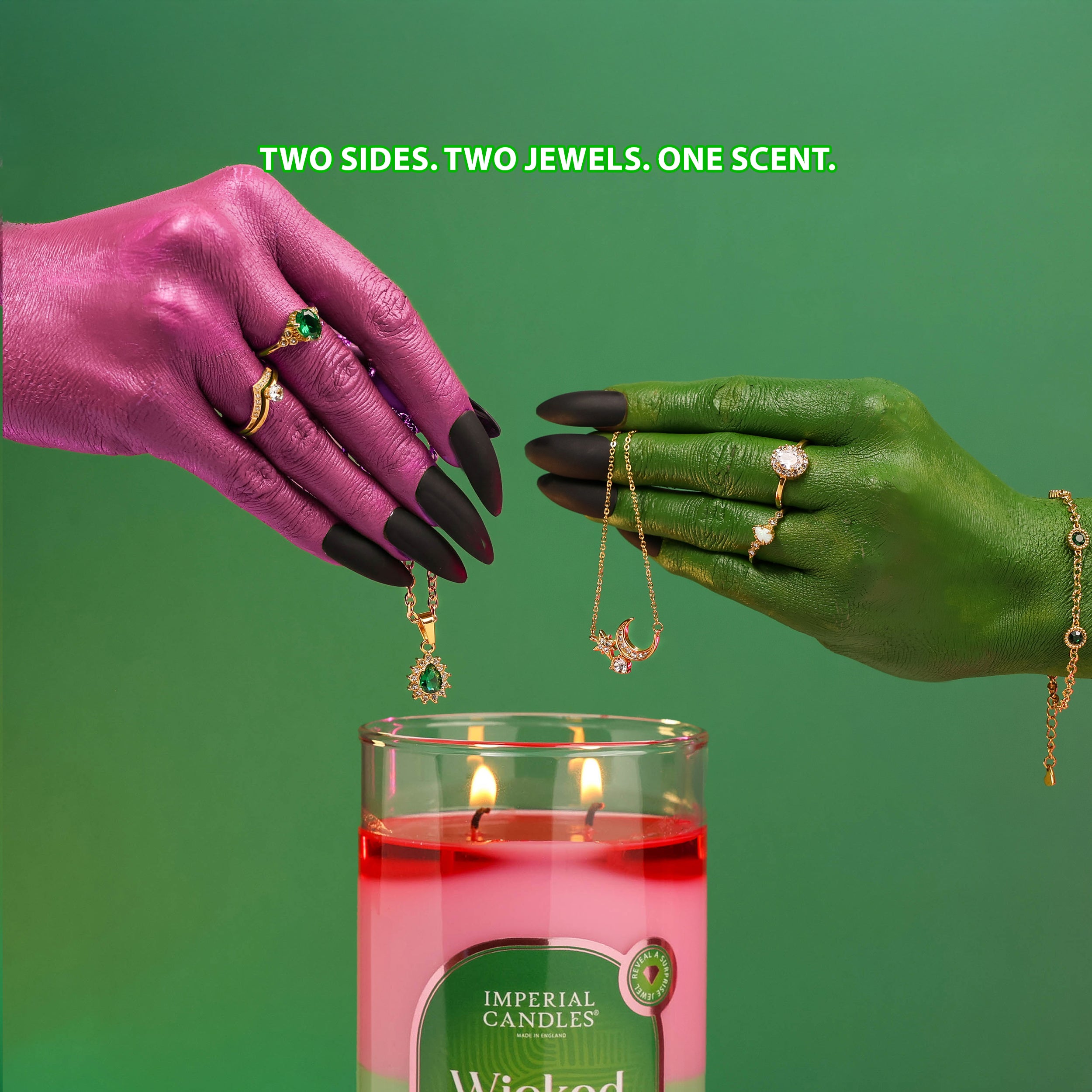 Dare to step into the spell. The Wicked Witch Candle is no ordinary flame — it’s a bewitching creation of green and pink layers, hand-poured with care, designed to mesmerise from the very first spark. Hidden within this magical candle are not one, but TWO jewels, ready to be uncovered like treasures from the cauldron.